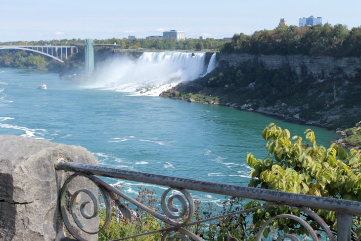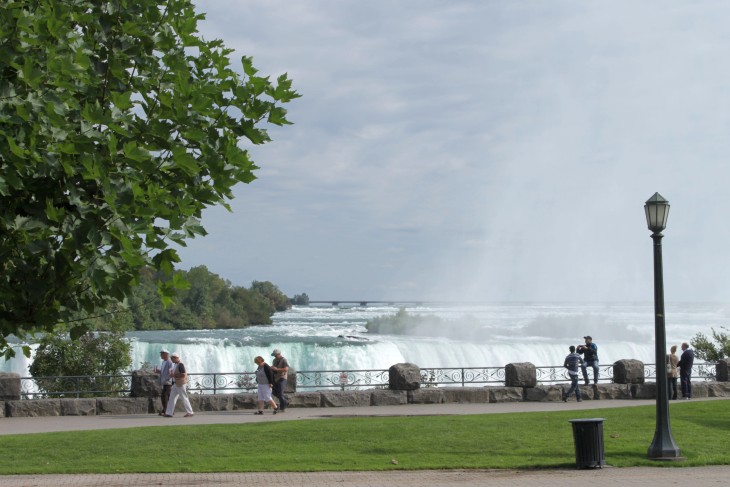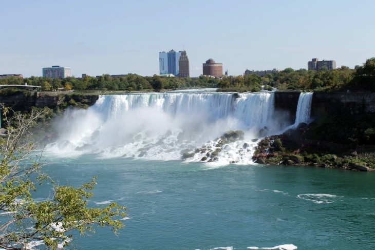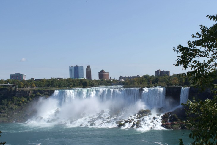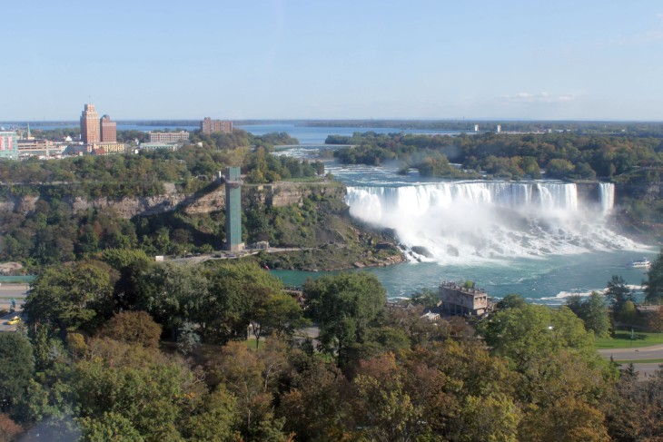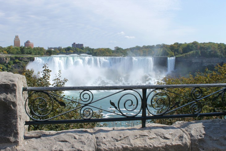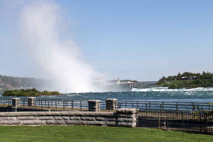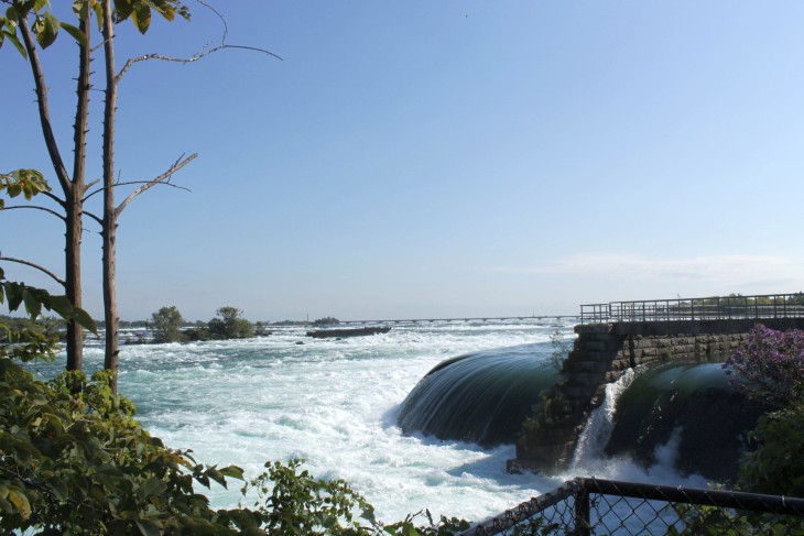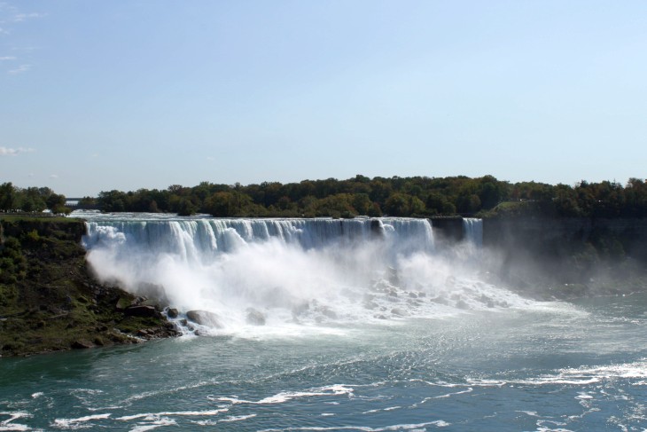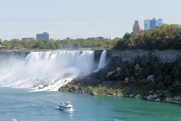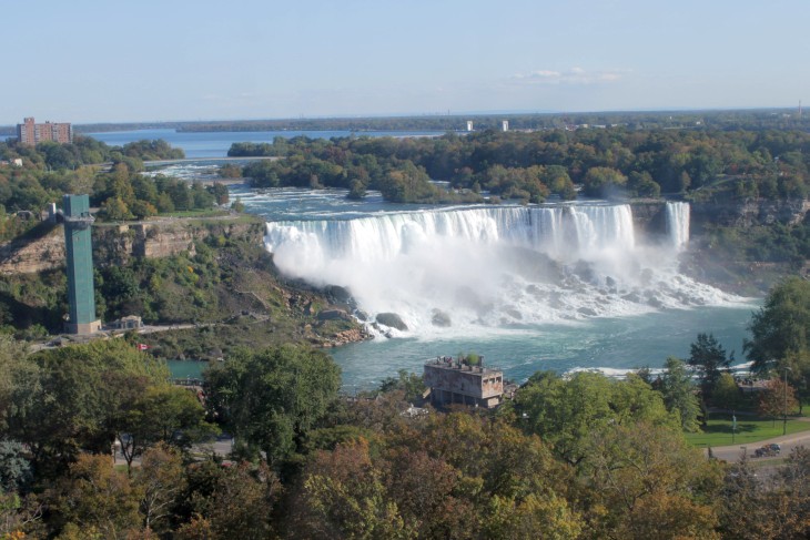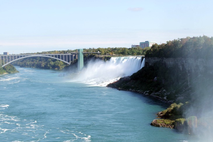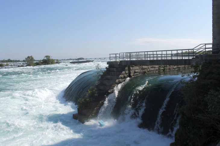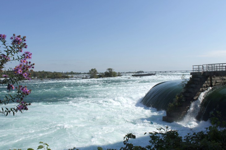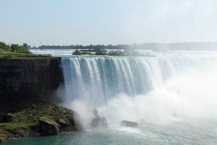 Der den Eriesee mit dem Ontariosee verbindende Niagara River, der zugleich die östliche Begrenzung der Niagara-Halbinsel bildet, stürzt 58 Meter in die Tiefe. Dabei werden die Fälle durch die oben gelegene Insel Goat Island in zwei Teile gespalten. Der US-amerikanische Teil hat eine Kantenlänge von 363 m, der kanadische eine von 792 m. Das Wasser des US-amerikanischen Teils fällt nach 21 m auf eine Sturzhalde, die bei einem Felssturz 1954 entstand. Der kanadische Teil Horseshoe hat eine freie Fallhöhe von 52 m.