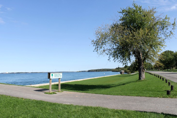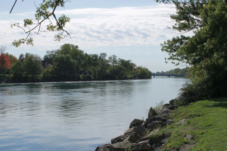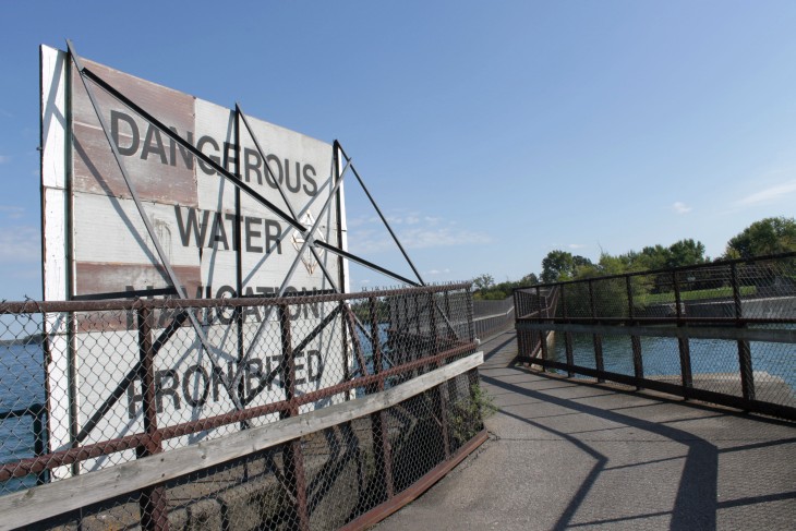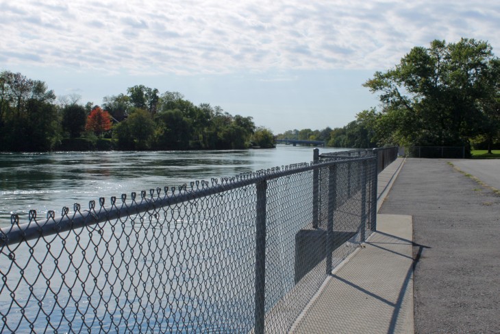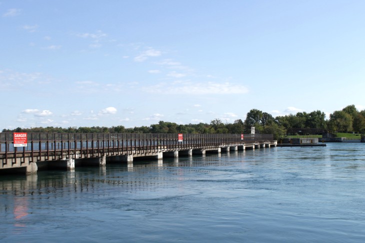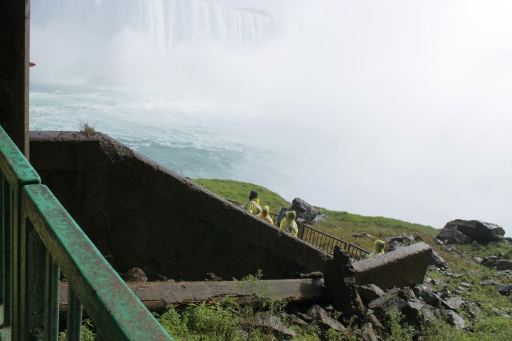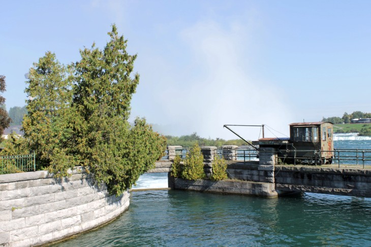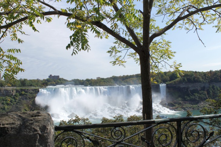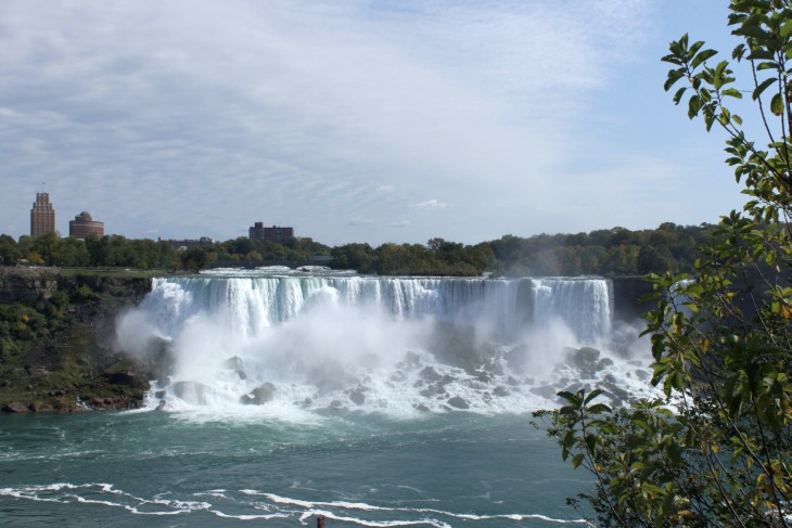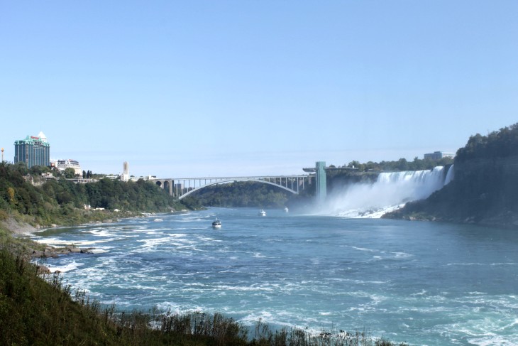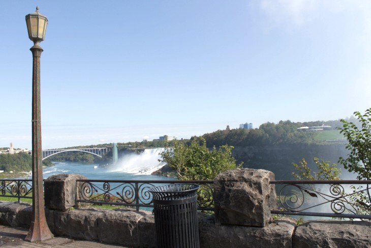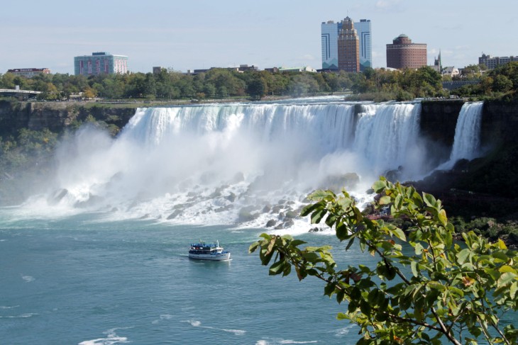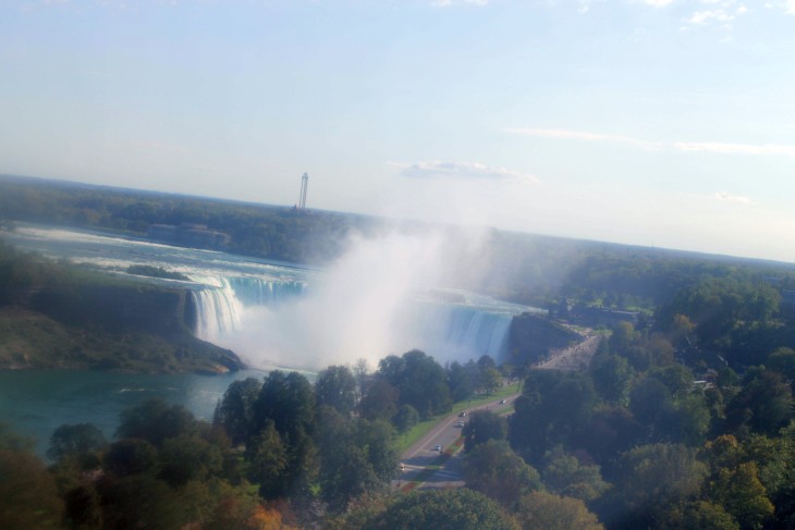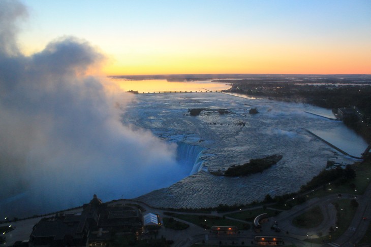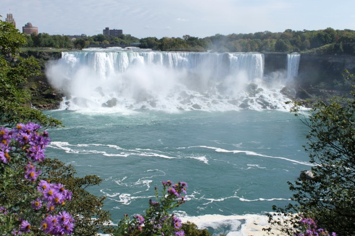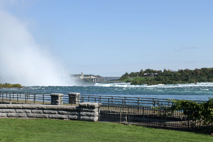 Der den Eriesee mit dem Ontariosee verbindende Niagara River, der zugleich die östliche Begrenzung der Niagara-Halbinsel bildet, stürzt 58 Meter in die Tiefe. Dabei werden die Fälle durch die oben gelegene Insel Goat Island in zwei Teile gespalten. Der US-amerikanische Teil hat eine Kantenlänge von 363 m, der kanadische eine von 792 m. Das Wasser des US-amerikanischen Teils fällt nach 21 m auf eine Sturzhalde, die bei einem Felssturz 1954 entstand. Der kanadische Teil Horseshoe hat eine freie Fallhöhe von 52 m.