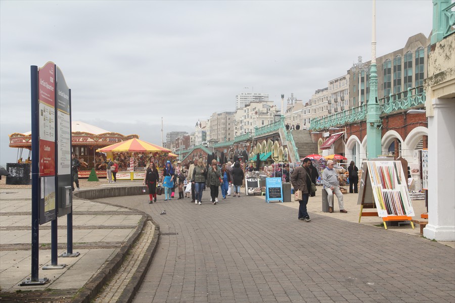 Wir fahren weiter zum Seebad Brighton. Im viktorianischen Zeitalter kam die Mode auf, aus der Stadt an die Küste zu fliehen, um das kühle Wasser und die frische Meeresluft zu genießen. Dieser Epoche verdanken Englands südliche Küstenstädte ihr reiches, für Seebäder typisches Kulturerbe, beispielsweise den Brighton Palace Pier.