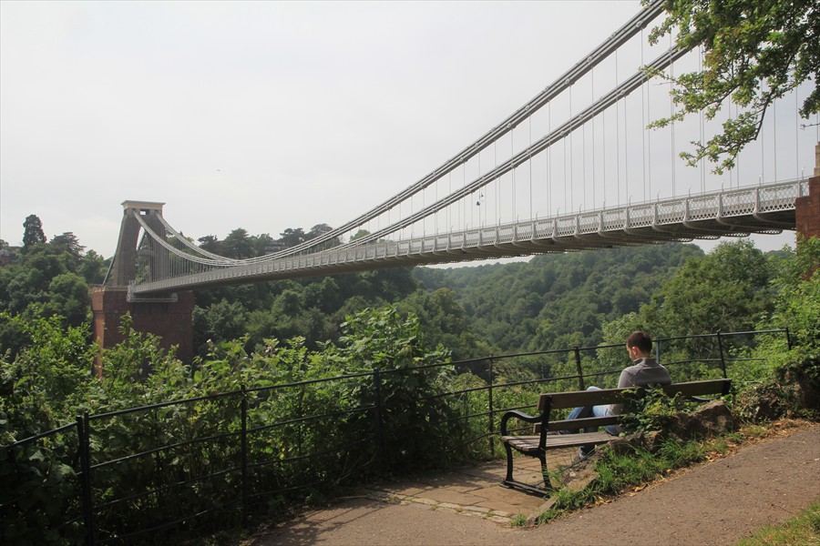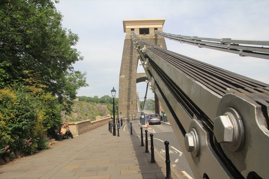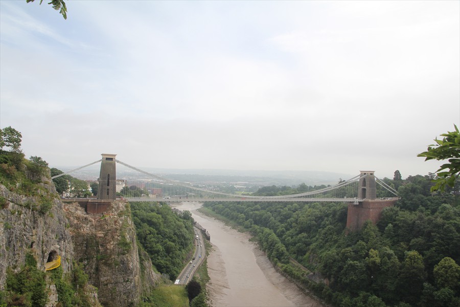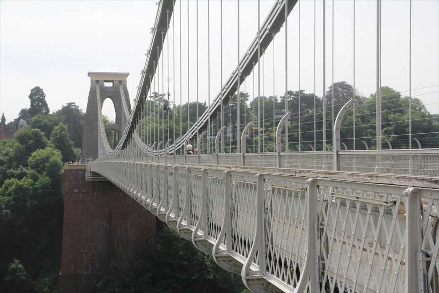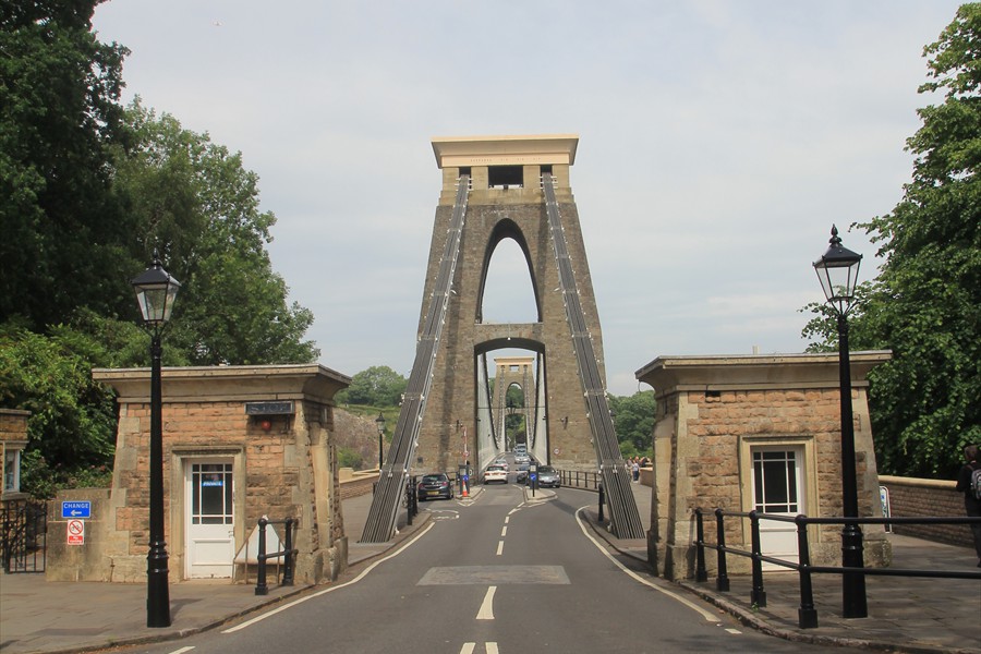 Wir fahren weiter nach Bristol. Spektakulär ist die Clifton Suspension Bridge. Sie wurde von Isambard Kingdom Brunel entworfen, auf ihn ist die Stadt besonders stolz. Als das Bauwerk 1864 endlich fertig war, lebte Brunel allerdings bereits nicht mehr. Doch sein Vermächtnis steht bis heute. Ursprünglich wurde die Brücke über die tiefe Schlucht des Flusses Avon errichtet, um den Pferdekutschenverkehr zu bewältigen – heute fahren bis zu 12 000 Autos täglich darüber. Für Autofahrer ist die Benutzung der 400 Meter langen Brücke kostenpflichtig, Fußgänger und Radfahrer zahlen nichts.