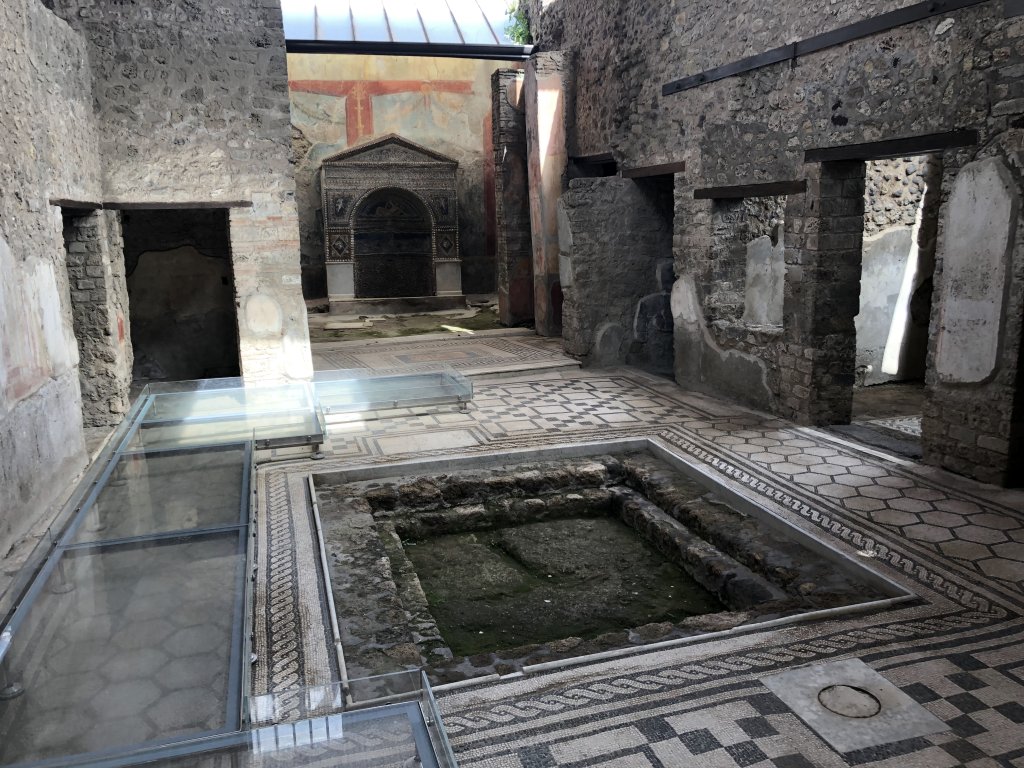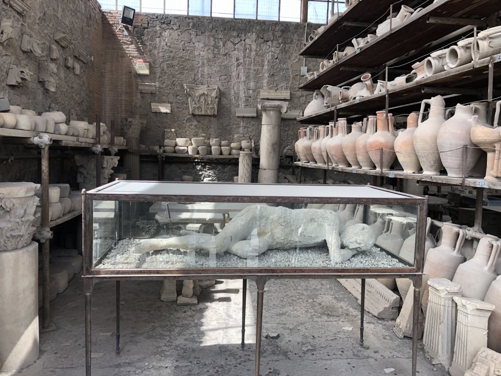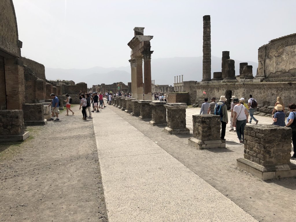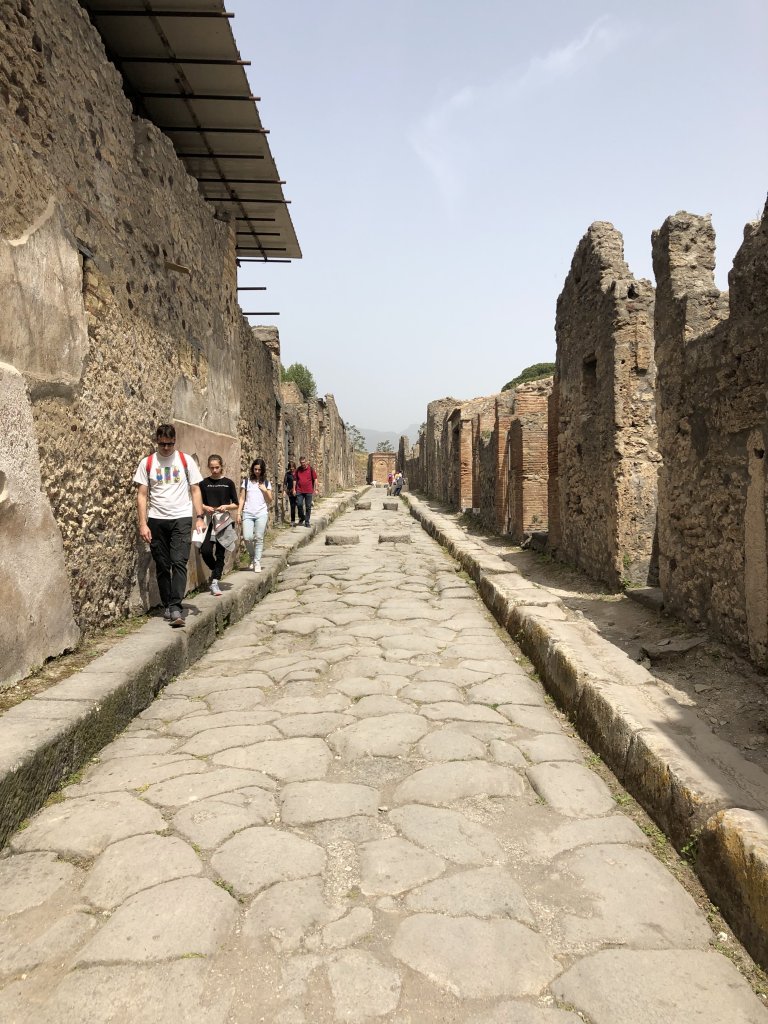 Zuerst besuchen wir heute Pompeji, die wohl berühmteste Ausgrabungsstätte Italiens. Die einst blühende Provinzhauptstadt wurde im Jahre 79 n. Chr. durch den Ausbruch des Vulkans Vesuv unter einem Asche- und Bimssteinregen 6 bis 7 Meter tief begraben und zeigt eine beeindruckende Vielfalt von antiken Lebensformen. Wie ein Gipsabdruck ist hier der Moment des ganz gewöhnlichen römischen Tages festgehalten.